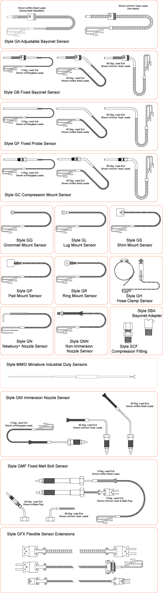 High or low temperature construction, standard or miniature size plugs and jacks, choice of 8 connecting head materials, leadwire with several choices of insulation, leads with metal overbraid or in flexible armor.